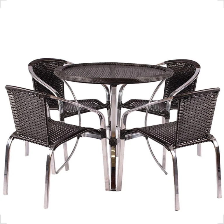 Kit 4 Cadeiras De Alumínio E Mesa Com Borda Pinheiro Artesanal preto