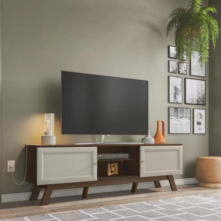 Em até 1x de R$ 379,99 sem jurosEm até 12x de R$ 55,77 com juros À vistaR$ 322,99Exclusivo no Pix Rack Retrô para TV até 70 Polegadas 2 Portas Correr Ema CabeCasa MadeiraMadeira