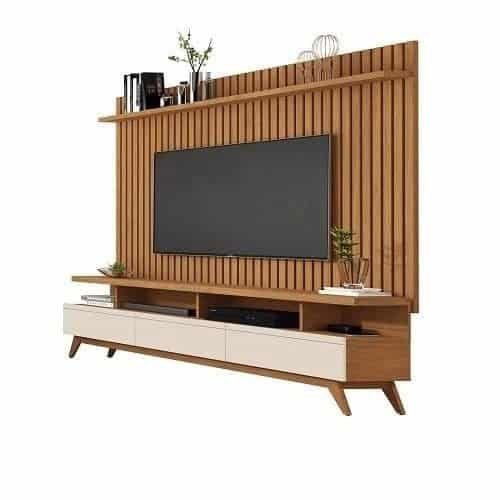 Rack Vivare 1.8 Wood Com Painel Classic Ripado Para TV Até 72 Polegadas Nature/Off White – Giga Móveis