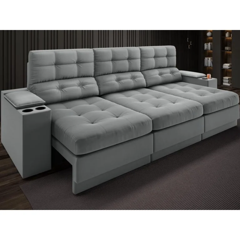 Sofá com Porta Copos Retrátil e Reclinável Pop 2,05m Velosuede Grafite – netsofas