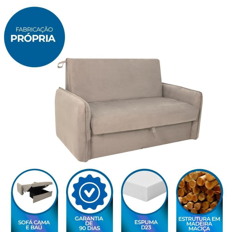 Sofá Cama Para Sala De Estar Zaia Com Baú Suede Matrix – Be Bege