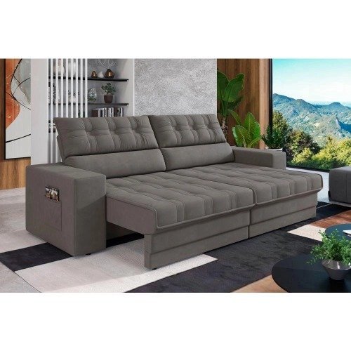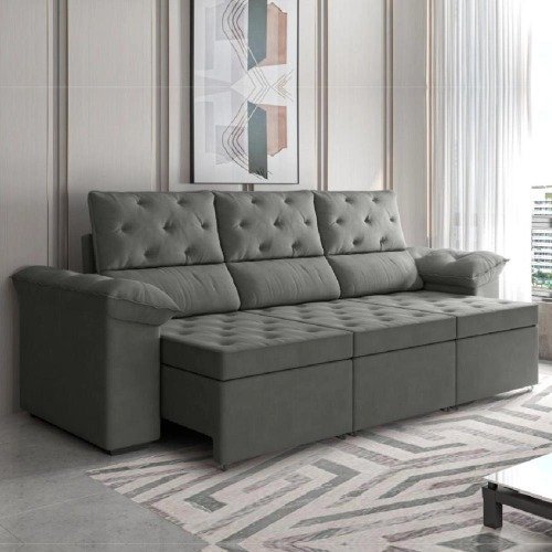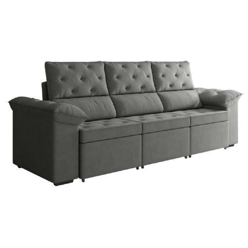 Sofá Retrátil 3 Lugares 2,10m York Suede Cinza