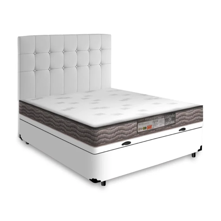 Cama Box Baú + Cabeceira Cassis e Colchão Casal – Probel – Evolution – 138x188x74cm Branco