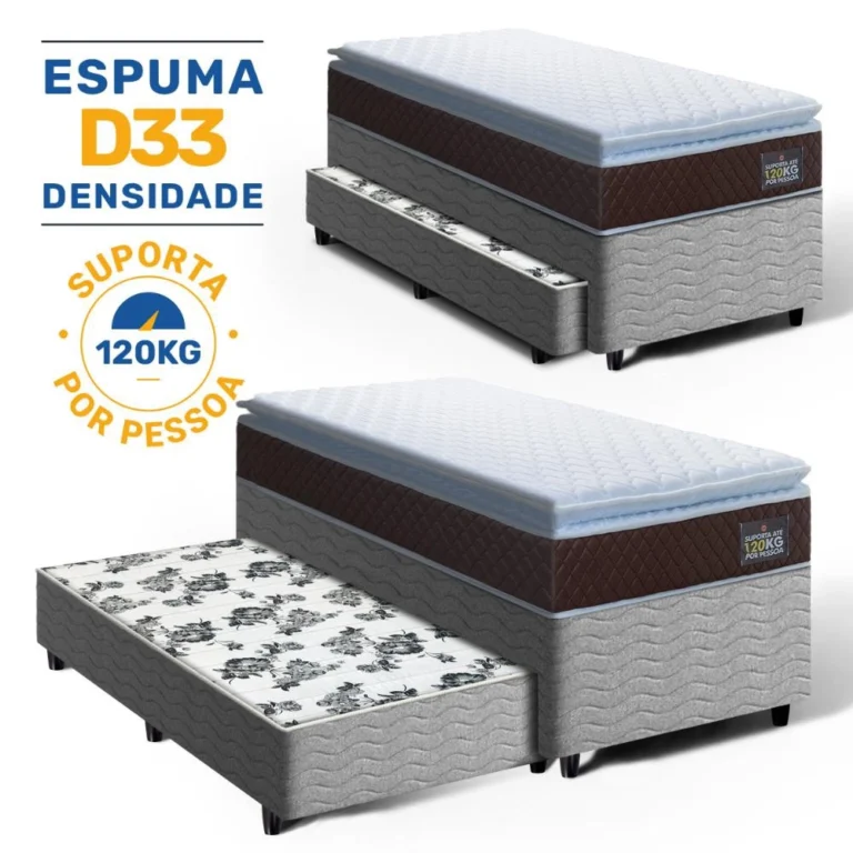 Cama Box com Colchão de Espuma D33 Pillow Top Comfort Luxo + Auxiliar de Espuma Unique Solteiro 88cm