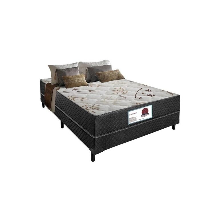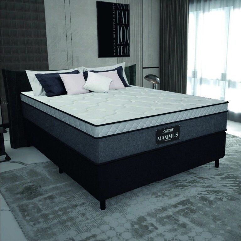 Cama Box Casal Queen Colchão Molas Ensacadas Pillow Top Maximus 158x198x67cm Cinza / Preto Gazin – Suporta até 120Kg por Pessoa