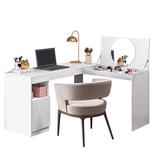 Escrivaninha Penteadeira com Espelho 1 Porta Burguesa Branco 135x121x137cm