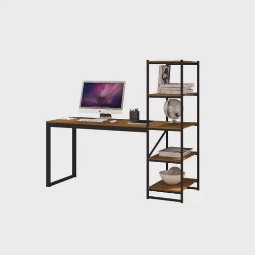 Escrivaninha com Estante 4 Prateleiras Innovare Espresso Móveis PretoCanela Rústico