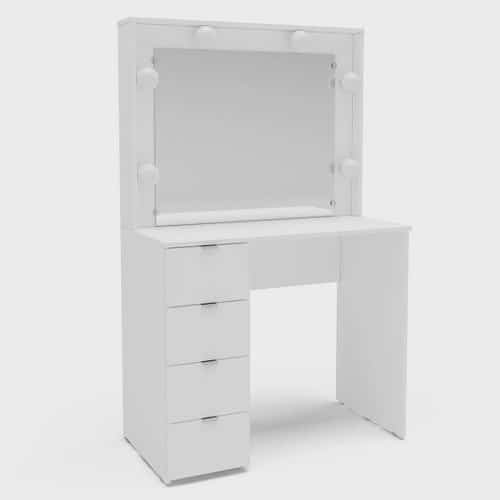 Em até 1x de R$ 434,98 sem jurosEm até 12x de R$ 63,84 com juros À vistaR$ 369,73Exclusivo no Pix Penteadeira Camarim 4 Gavetas Espaço para 6 Lâmpadas Califórnia