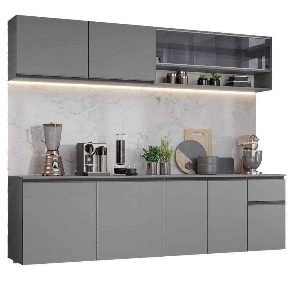 Armário De Cozinha Completa Suspenso 240cm Cinza Nice Madesa 05 CinzaEste Armário de Cozinha Completa da linha Nice da Madesa é ideal para deixar sua cozinha mais funcional e moderna, renovando seu ambiente com muito espaço e organização.