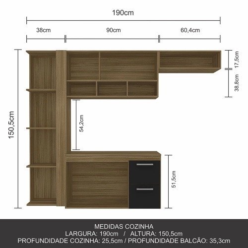 Medidas da Cozinha Montada: A:150,5cm L:190cm Profundidade do