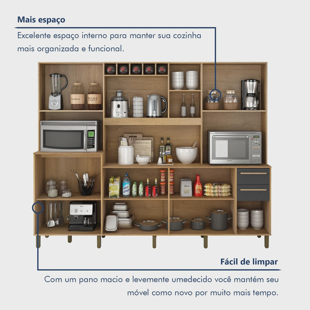 Armário para Cozinha 13 Portas 2 Gavetas Agata