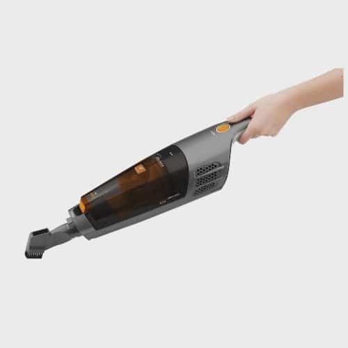 Aspirador de Pó Midea 2 em 1 Preto e Laranja VSA15B – Bivolt tem bateria recarregável de 18V e autonomia de até 40 minutos. é bivolt e possui uma haste flexível que se movimentam em 160° facilitando a limpeza do dia a dia. O Sistema Ciclônico de sucção proporciona um ótimo resultado na limpeza. é um aspirador prático, que pode ser utilizado como aspirador Vertical ou Portátil, que substitui o uso de vassouras que acabam espalhando o pó enquanto varrem.