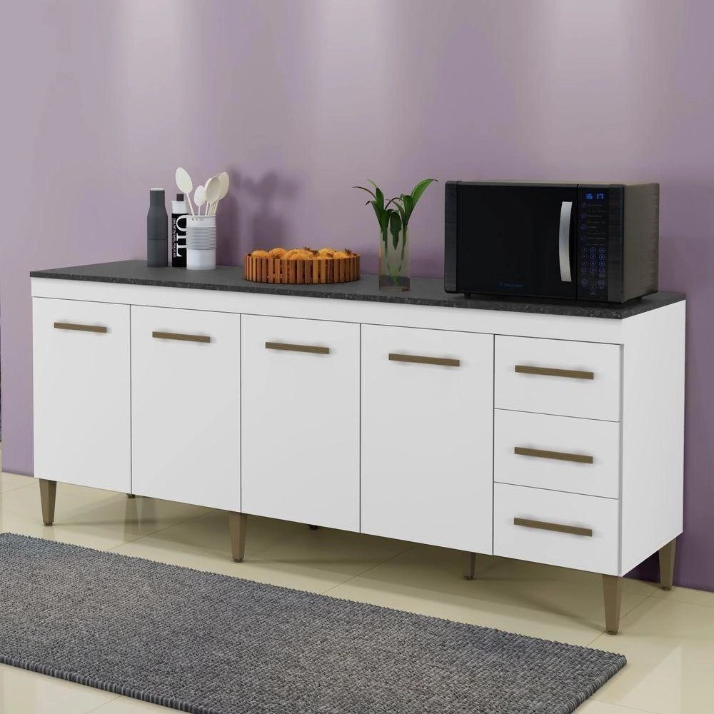 Balcão Atenas 4 Portas E 3 Gavetas Kaiki Moveis Branco