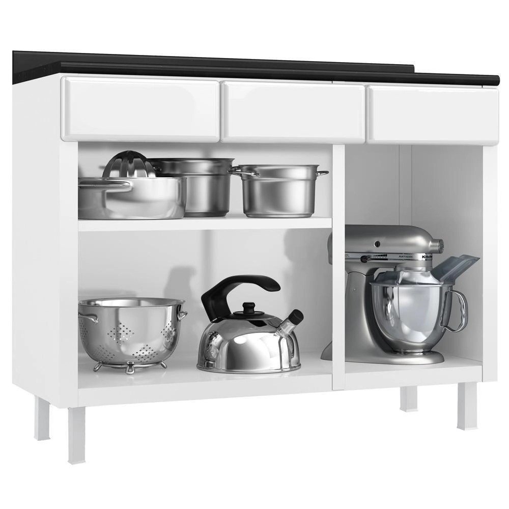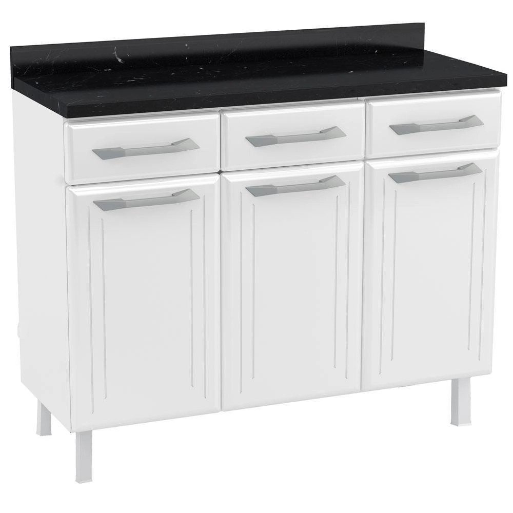 Balcão Gabinete Cozinha Aço Telasul Topázio Com TampoO Balcão triplo de aço Topázio é pura versatilidade na cozinha: possui 3 gavetas para a acomodação de talheres, tolhas de mesa, panos de prato e outros utensílios de rotina. A estrutura da gaveta é de polipropileno, um plástico muito rígido, resistente e fácil de lavar. O tampo é desenvolvido em mdp, com revestimento laminado que garante qualidade e resistência. O Balcão Topázio é feito em aço, por isso não cria fungos e nem parasitas. Ele passa por um rigoroso processo de pintura eletrostática, que confere proteção contra a ferrugem garantindo mais durabilidade e resistência. Além de toda qualidade, o produto tem acabamento brilhoso que traz um toque de sofisticação e personalidade ao ambiente.