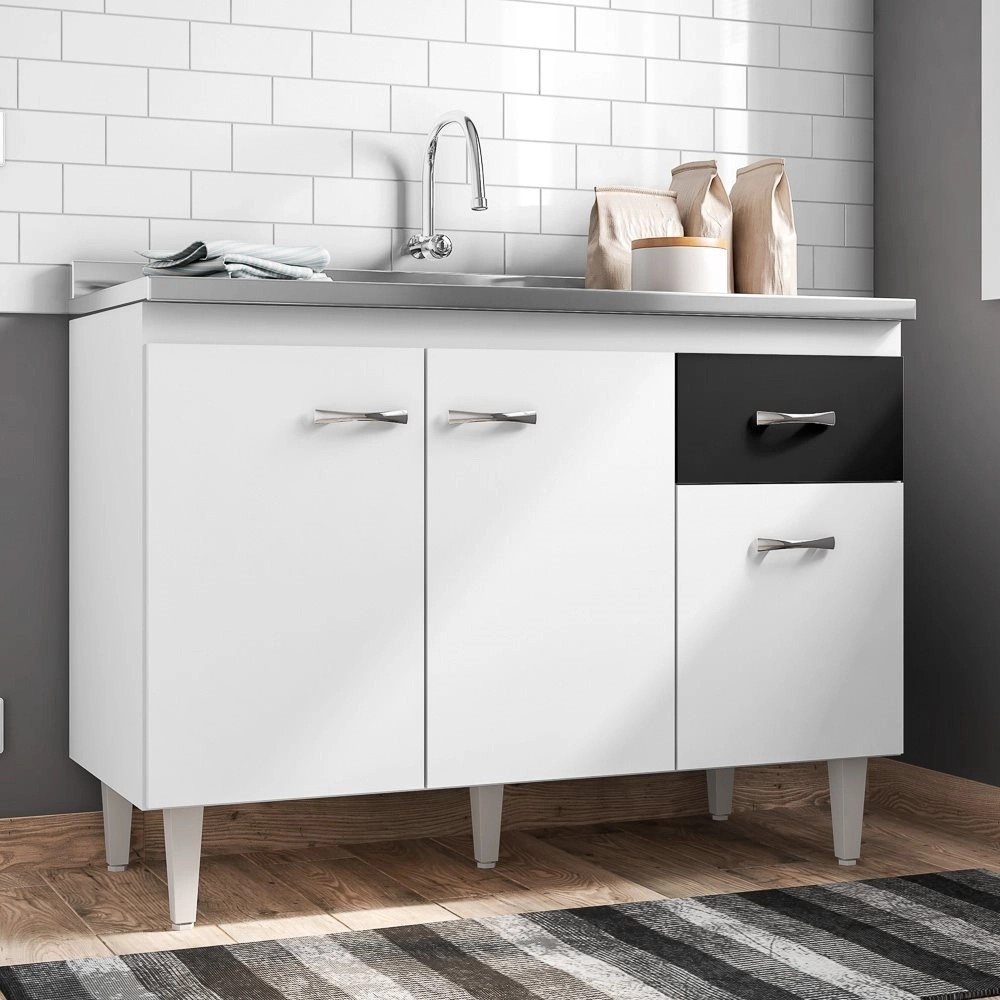 O Balcão Gabinete Com Pia Inox 120cm Gabriela da ajl Móveis é uma excelente peça para ser utilizada na sua cozinha e organizar seus utensílios. Conta com estrutura em mdp/mdf, 3 portas convencionais com amplo espaço interno e 1 gaveta para melhor auxiliar nessa tarefa, além disso, seu acabamento em pintura uv garante maior durabilidade e resistência. Outro diferencial são os pés reguláveis que facilitam a posição do móvel. Um charme, não é mesmo?