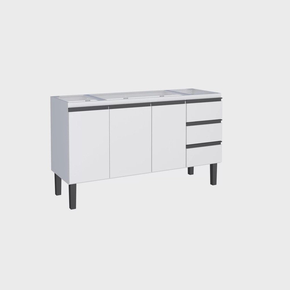 Balcão para Cozinha em Aço 144cm 3 Portas 3 Gavetas Netuno