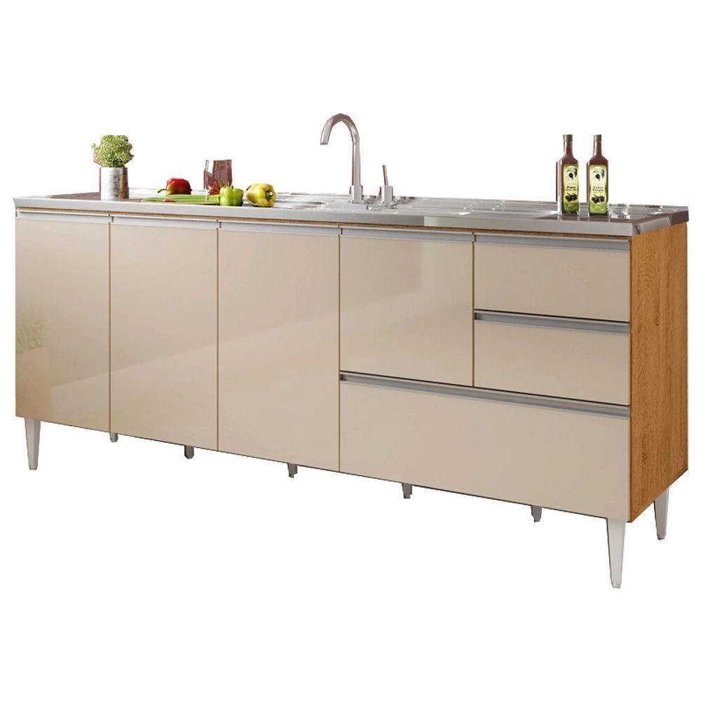 Balcão Para Pia De 1,80 Mt Maceió Com Gavetão Amendoa Off White Puxador Aluminio