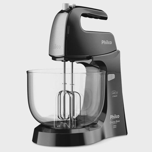 Batedeira Philco Crome Base Cristal Duo Turbo Preta 550W