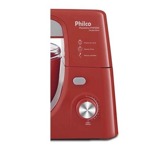 Batedeira Planetária Philco PHP500 Turbo 500W Double Bowl Vermelho 127V