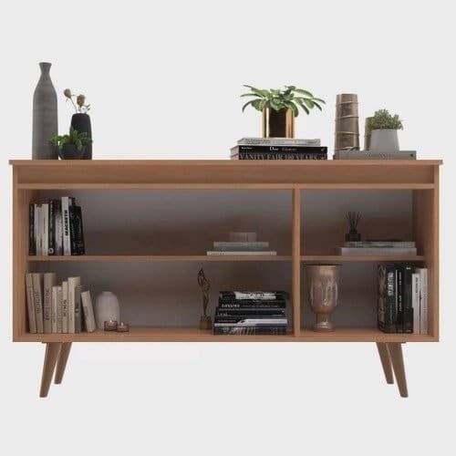 Buffet 3 portas Retro Elza Yescasa, com altura de 73 cm sua profundidade de 32 cm e comprimento 136 cm. Possui 3 portas de bater com dobradiças metálicas. Possui uma prateleira interna que suporta até 7 kg. Seus pés são retrô na cor bronze.