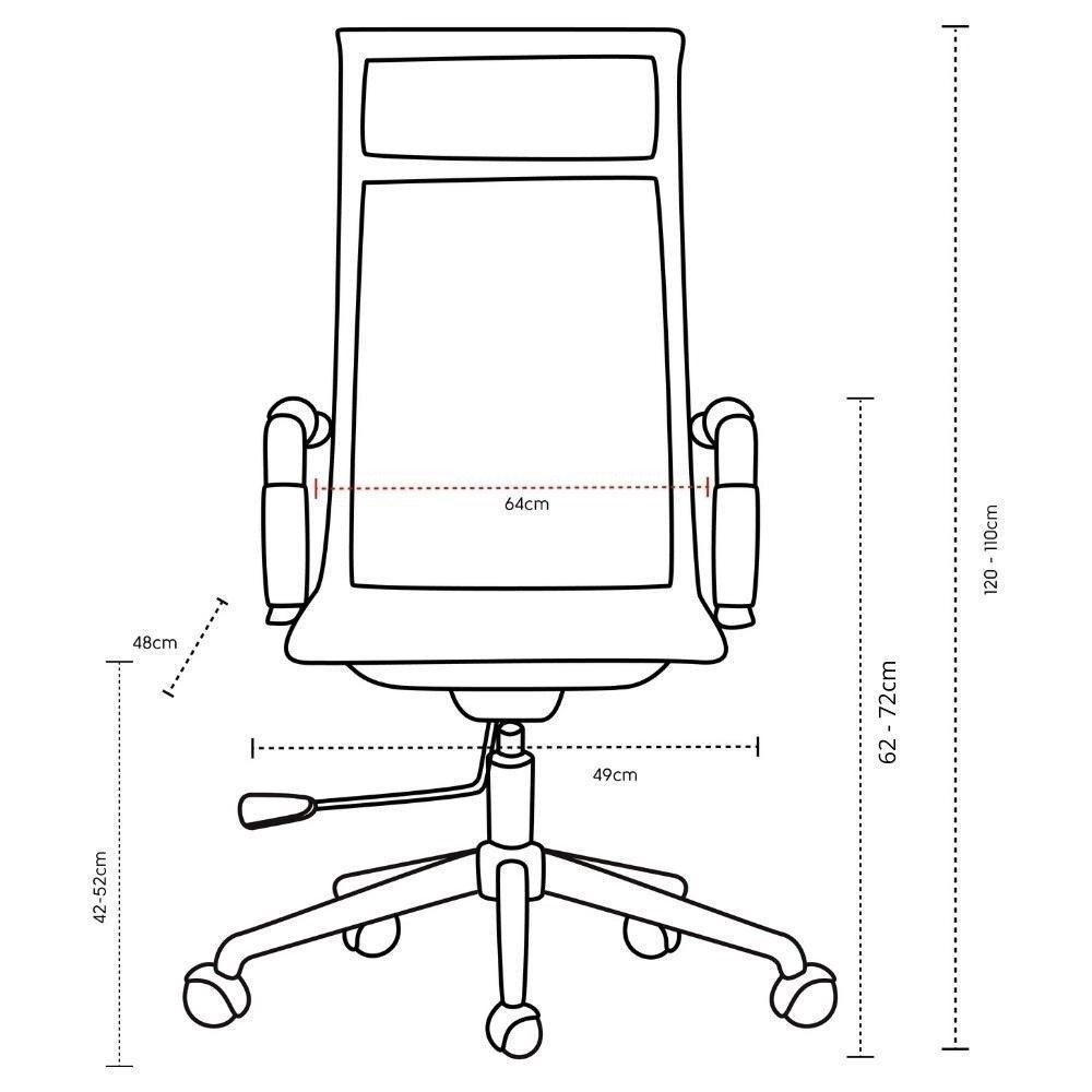Altura do chão ao braço (mínimo – máximo): 62-72cm
