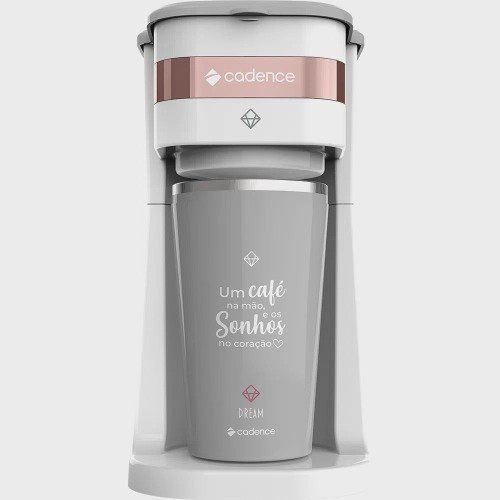 Acorde para correr arás dos seus sonhos com a nova Cafeteira Dream Cadence. Todo o sabor e o aroma de um café fresquinho, fácil de preparar e fácil de levar para onde você quiser, com o toque exclusivo rosé gold. Com copo térmico que mantém a temperatura do café, com tampa de segurança e base antiderrapante. é o seu café, facinho, facinho, onde você quiser.
