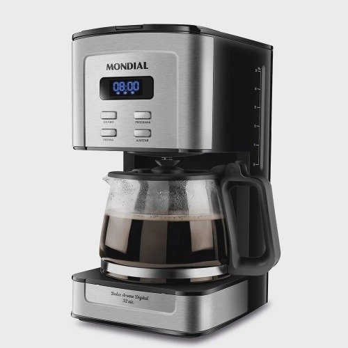 A Cafeteira Elétrica C-44-32X-SDI prepara até 32 xícaras de café. Com display digital, pode ser programada até 24h antes. Tem jarra de vidro fácil de limpar e porta-filtro permanente, dispensando filtro de papel – ecológica. Acorde com o cheirinho de café pronto! Esta cafeteira elétrica programável tem jarra de vidro que pode ir à mesa. Com seu sistema corta-pingos, você pode retirar a jarra para servir o café mesmo durante o preparo. A base com aquecimento conserva a temperatura, para você ter café quentinho por mais tempo sem alterar o sabor. Seu porta-filtro permanente é mais econômico e ecológico. Já a tampa basculante traz mais facilidade na hora de colocar a água e o pó de café. Esta cafeteira tem ainda um indicador de nível de água, mostrando quantas xícaras serão feitas, para você passar o café na medida certa. A Cafeteira Eletrica Dolce Arome C-44-32X-SDI é melhor para uso doméstico, residencial. Tudo isso com 1 ano de garantia Mondial.