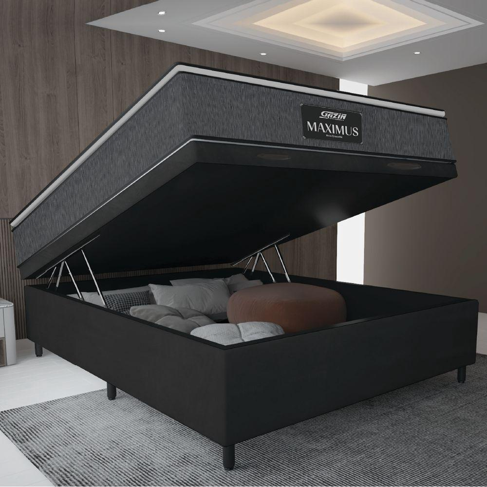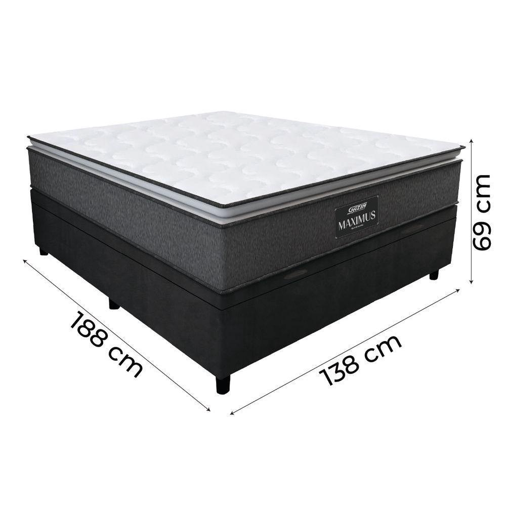 Cama Box Baú Casal Colchão Molas Ensacadas Pillow Top Maximus 138x188x69cm Cinza / Preto Gazin