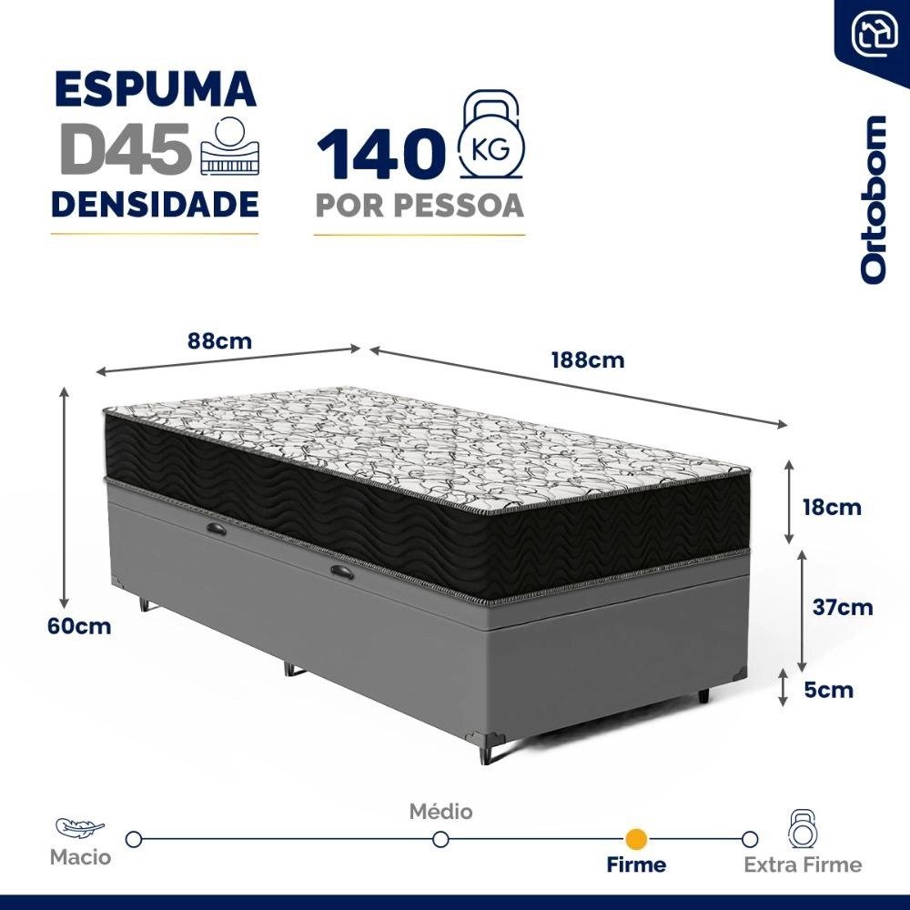 – Dimensões do produto (larg. x comp. x alt. ) Solteiro: 88x188x42cm