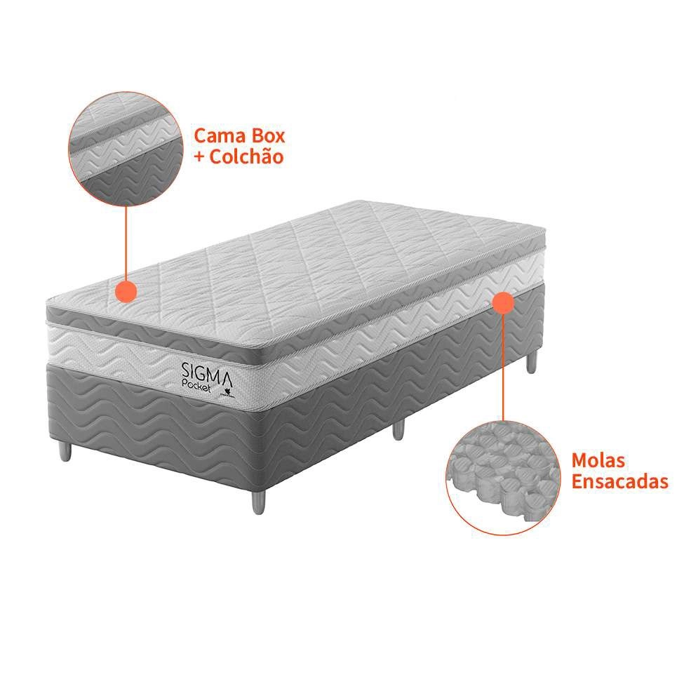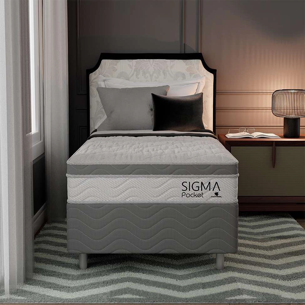 Que tal a Cama Box com Colchão Sigma? Dormir bem é a melhor forma de começar cada dia, por isso você precisa de uma cama como a Sigma para te acompanhar na hora do descanso. Combinação perfeita entre estrutura resistente e aconchego, ela se destaca pela base de madeira maciça, que tem ótima estabilidade, e pelo colchão com molas ensacadas que preenchem o interior da peça e são a pedida certa para dar maior suporte para o corpo – além das molas, ele oferece também a comodidade da espuma D26, um material com densidade incrível para que todas as noites sejam mais completas. Já quando o assunto é beleza, ela também tem pontos fortes: a cor delicada das peças dá leveza à decoração e cai bem com qualquer tipo de roupa de cama, assim, além de ser aliado do sono pleno, o móvel também agrega ao estilo do seu cantinho. Com todas essas vantagens, você só precisa se preocupar em escolher um pijama confortável e curtir as noites de sono mais relaxantes da sua vida!
