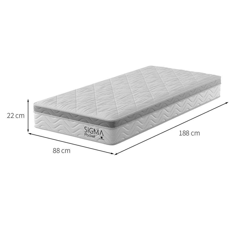 Colchão Solteiro Sigma Molas Ensacadas (22x88x188) Branco e Cinza