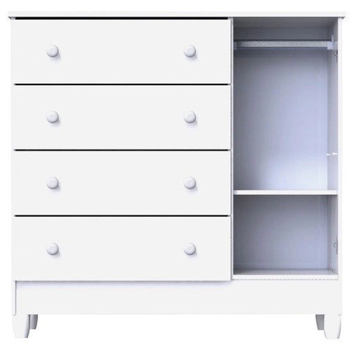 – A Cômoda Fraldário Selena traz um design moderno além de ser funcional, irá complementar o quarto do seu filho. Sua estrutura é composta por mdp e mdf de alta resistência, conta com pintura atóxica e acabamento na cor branco de alto brilho. Possui 1 porta, 1 prateleira e 4 gavetas com corrediças telescópicas muito resistentes, que permite abertura total das gavetas. Deixe seu ambiente ainda mais bonito com a Cômoda Fraldário Selena.