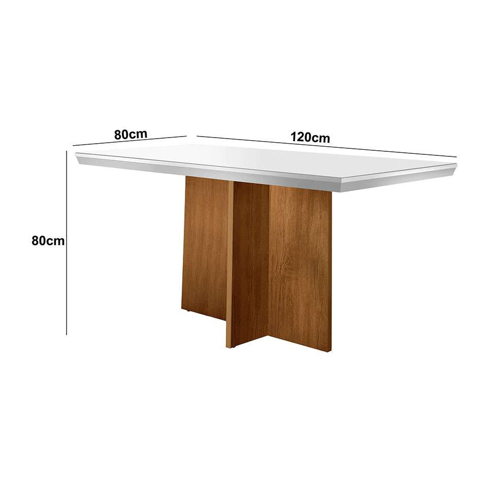 | DimenAproxEmbaProduto | Mesa: Altura: 80 cm Largura: 120 cm Profundidade: 80 cm / Cadeira: Altura: 98 cm Largura: 42 cm Profundidade: 56 cm |