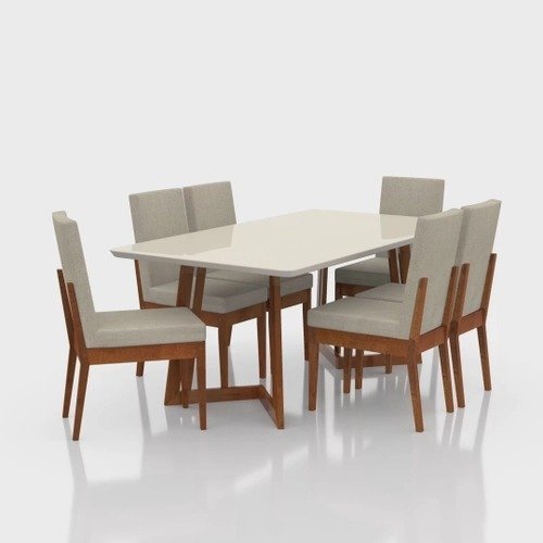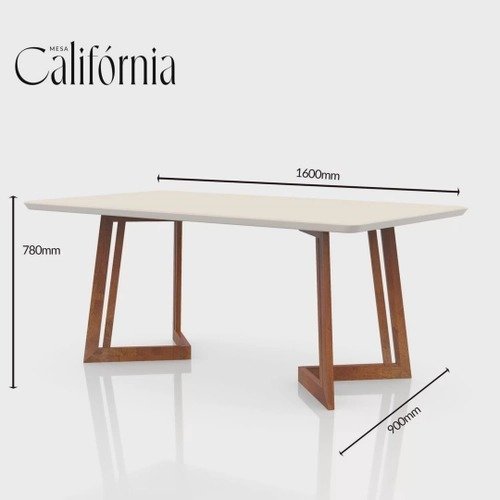 A Mesa de Jantar Califórnia possui tampo em madeira mdf com vidro de 4 mm, conferindo assim ao móvel sofisticação e design moderno, além disso, o vidro proporciona um leve reflexo dos itens sobre a mesa, dando ainda mais charme a mesa.