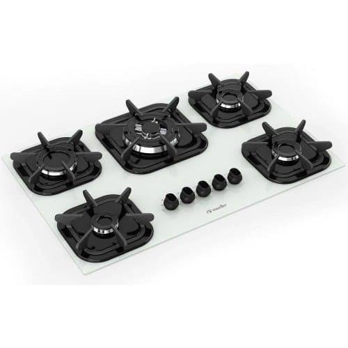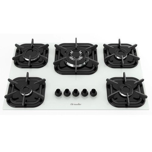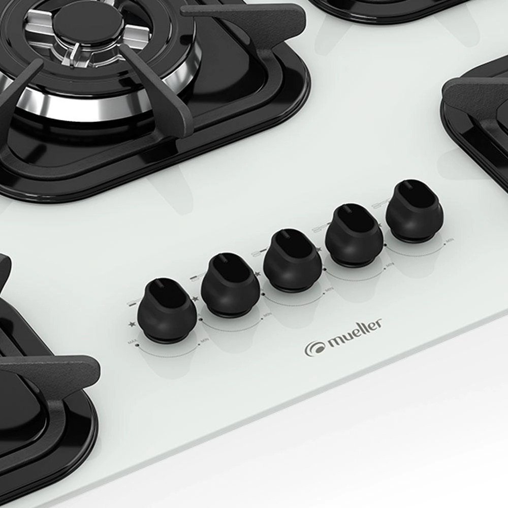 Cooktop Mueller 5 bocas Branco com Queimador Tripla chama e Grade de Ferro Fundido Bivolt
