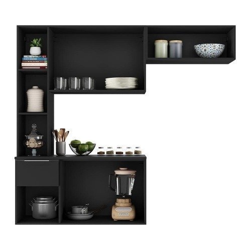 Cozinha Compacta com Armário e Balcão MP2001 Sofia Multimóveis Preta