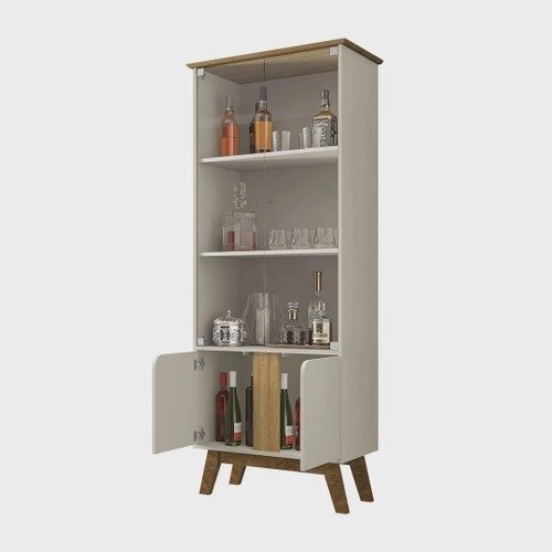 Cristaleira Retrô Portas de Vidro Fecho Magnético Pés Madeira Madri Móveis Bechara