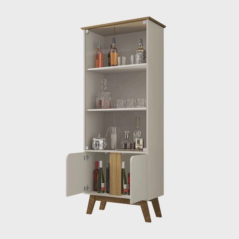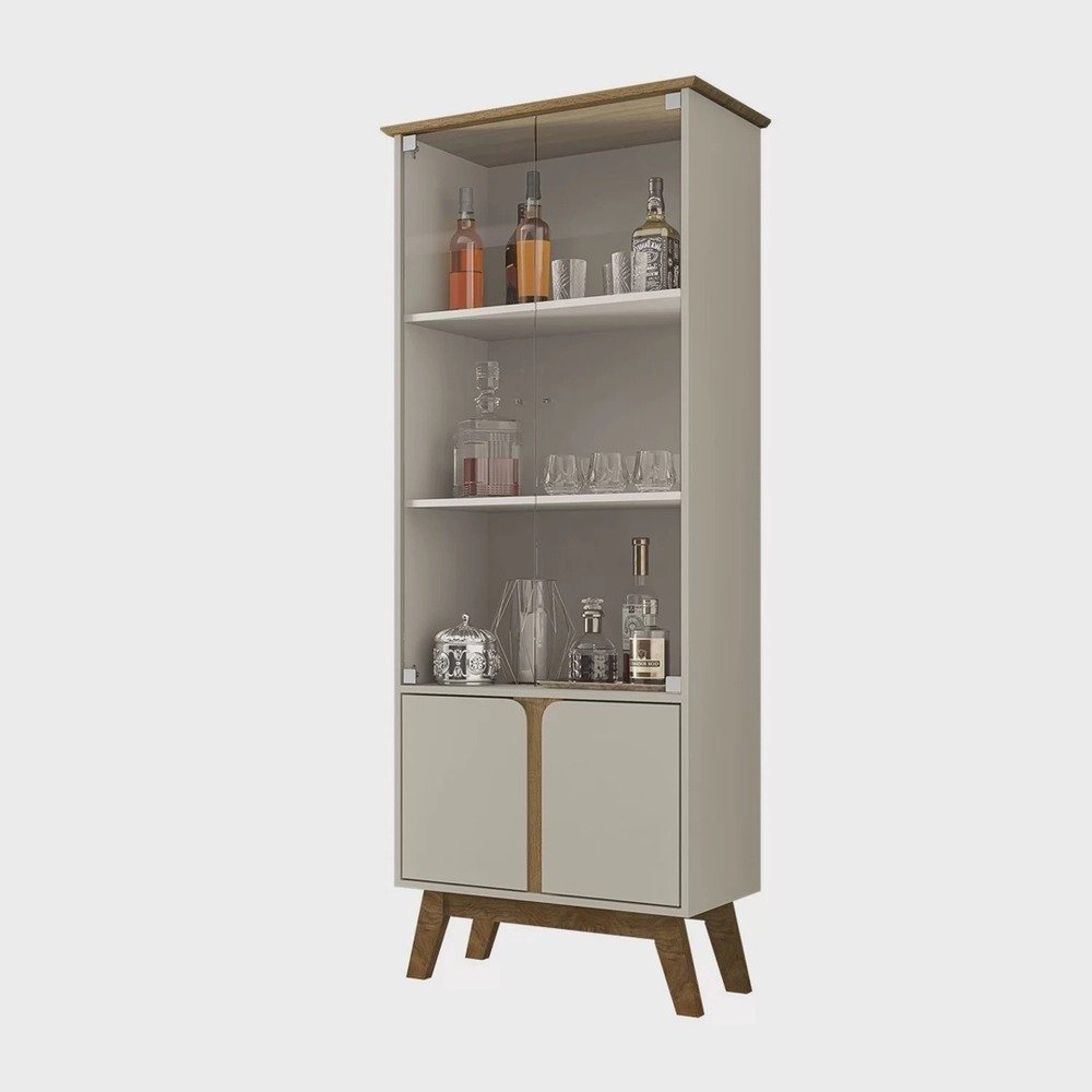 A Cristaleira Madri irá encantar você! Ela possui design retrô, e com certeza irá agregar muito mais charme e requinte ao seu ambiente. Conta com amplo espaço interno dividido por três prateleiras, que irá acomodar perfeitamente todas suas bebidas e taças. Portas de vidro 4mm e puxador de pvc Cromado. Portas inferiores com design curvo e dobradiças metálicas que complementam o charme do produto! Ela possui estrutura elaborada em mdp, tampo em mdf com bordas usinadas em ângulo e pés de madeira maciça, o que garante maior resistência e qualidade ao produto.