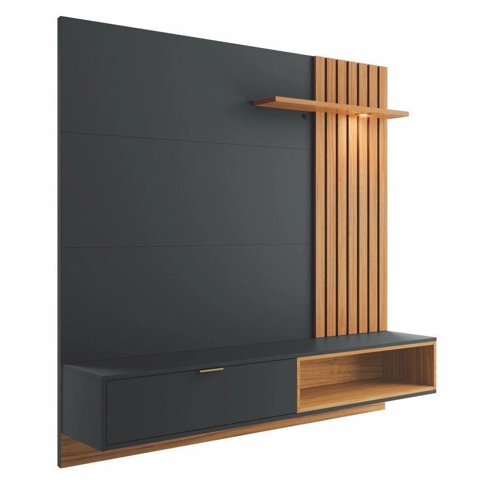 Estante Para Tv Com Ripas E Nichos Mit 1.6 Preto Noce