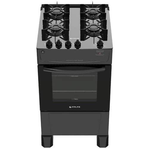 Este produto ainda conta com: Mesa de vidro temperado sem bordas, manípulos removíveis e na base da mesa, acendimento automático, 1 grade deslizante, trempes individuais robustas, forno amplo.