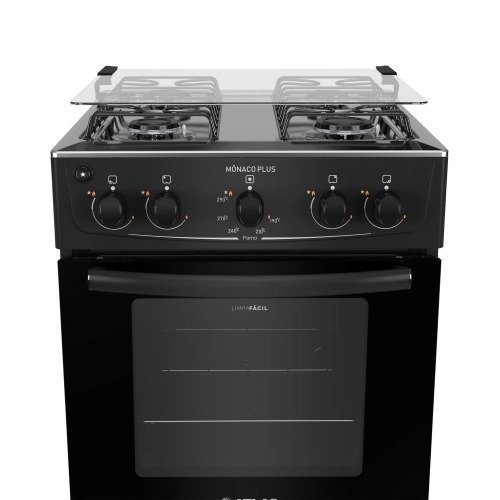 Fogão Atlas Mônaco Top Glass 5 Bocas Preto - Bivolt