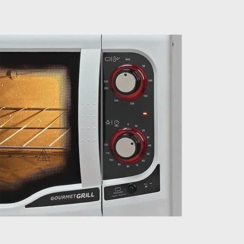 O Forno Elétrico Fischer 44 Litros Gourmet Grill Branco – 220 Volts assa, doura, tosta gratina e aquece, apresenta controle automático de temperatura, controle independente da resistência superior e a resistência inferior é acionado pelo termostato, timer de até 120min com aviso sonoro garantindo praticidade na hora de cozinhar.