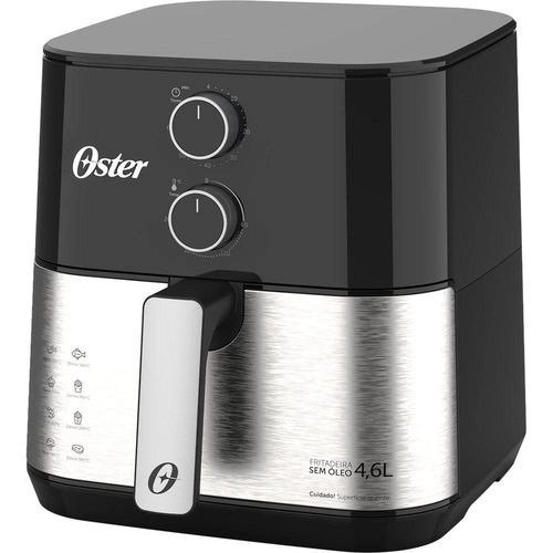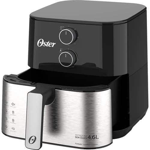 Para facilitar ainda conta com ajuste de temperatura de 80º a 200ºC, a Fritadeira Elétrica Oster Inox Air Fryer Compact 4,6L OFRT520 alia potência e capacidade!