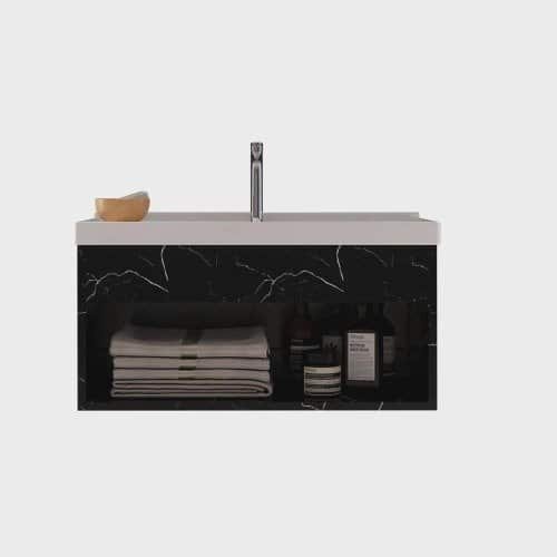 Gabinete para banheiro com cuba e nicho suspenso – preto marmorizado – beta cerrocha