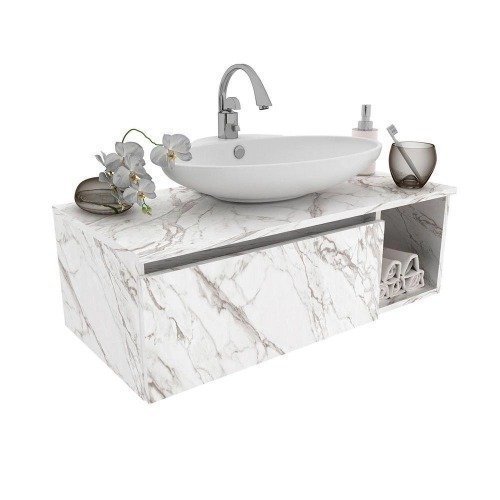 Gabinete Suspenso Para Pia De Banheiro Com 1 Porta E 1 Nicho Cor: Mármore Branco- produto novo com manual