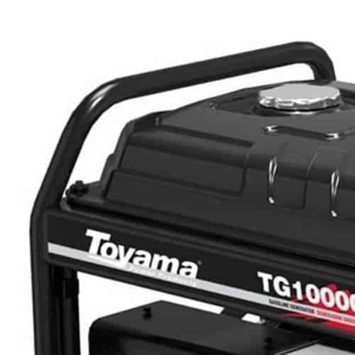 Grupo Gerador Toyama, Equipado com motor Gasolina de 16.0HP, partida manual e elétrica, monofásico bivolt 110 e 220V, Potência Máxima de 9 kva e Potência Nominal de 8 kva, equipado com tanque de 25 litros que proporciona aproximadamente 8 horas de autonomia.