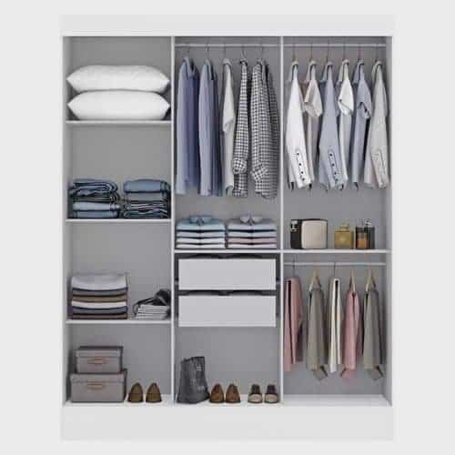 Guarda Roupa Atenas 3 portas é produzido 100% em mdp com 3 portas de correr e puxadores embutidos é ideal para qualquer espaço ele é bem divido contendo 3 prateleiras,3 cabideiros e duas gavetas o que proporciona uma ótima organização.