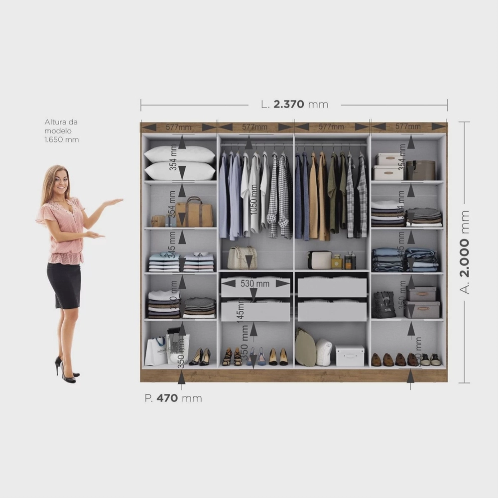 O guarda roupa Paris 8 portas é ideal para quem procura espaço e versatilidade, tornado seu ambiente ainda mais moderno e aconchegante.