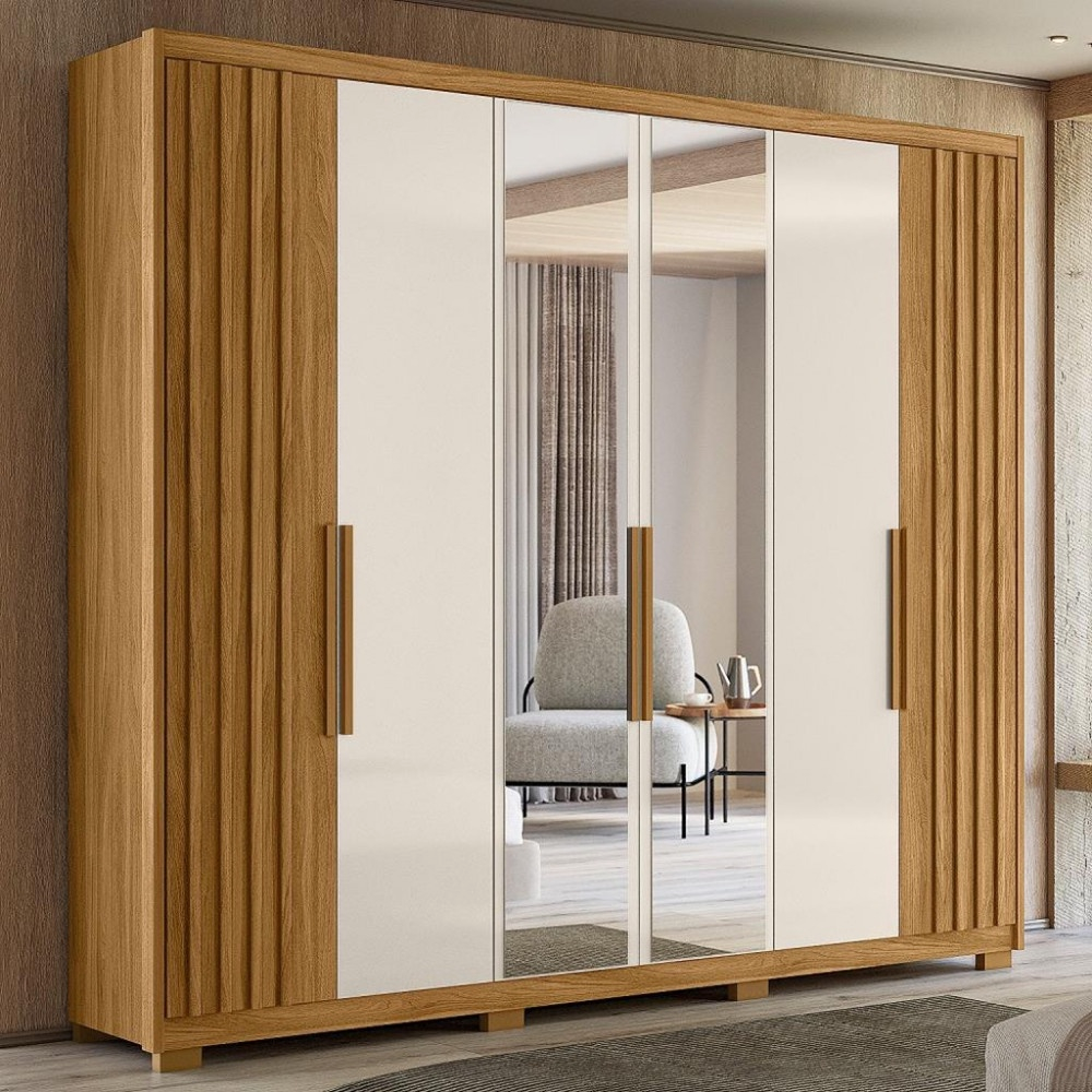 Guarda Roupa Casal com Espelho 3 Portas de Correr Ripado 4 Gavetas Royale Gelius