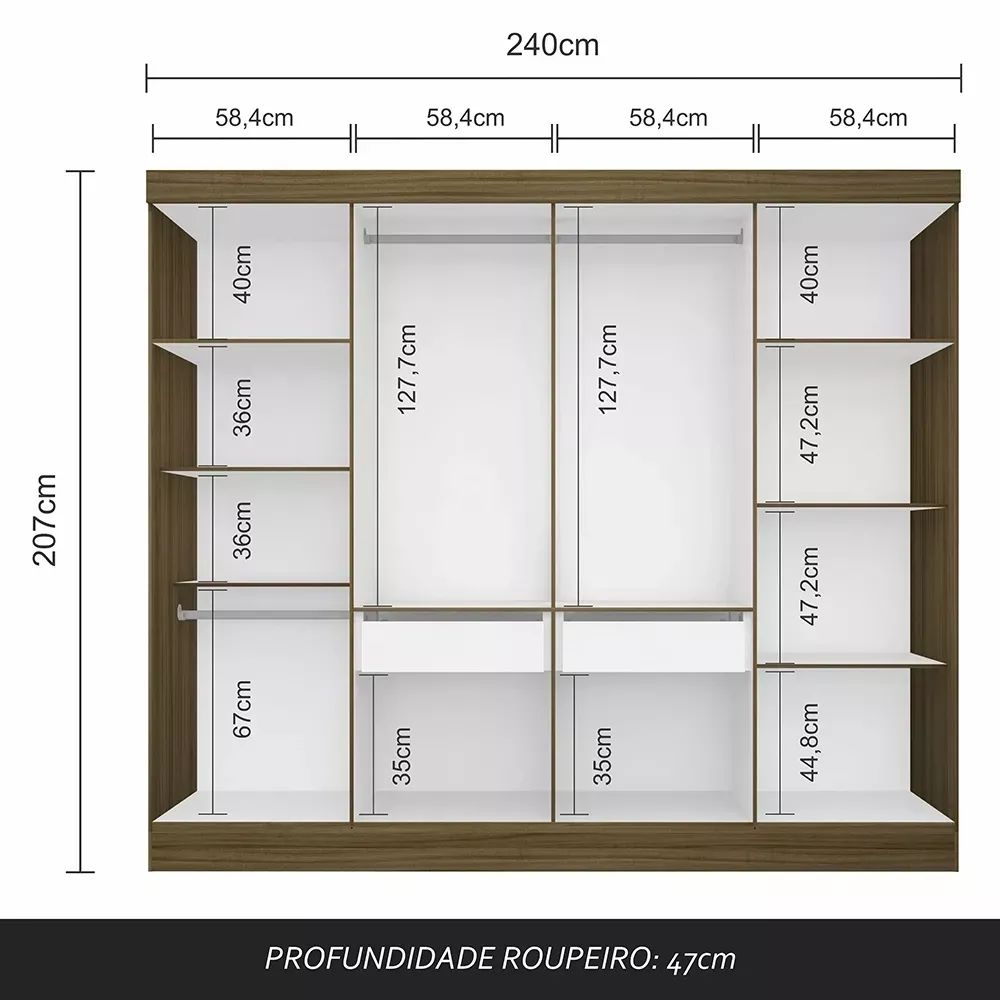Medidas do Guarda-roupa Montado: 207x240x47cm
